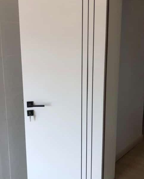 This premium matte white door features three parallel engraved lines along one side, delivering a sleek and refined look suitable for luxury apartments and offices.
