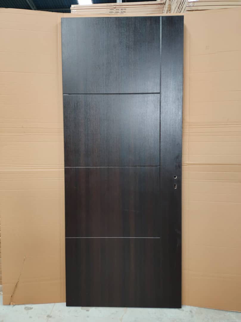 Featuring a rich walnut brown finish with sleek panel divisions, this door offers modern elegance combined with timeless natural appeal.